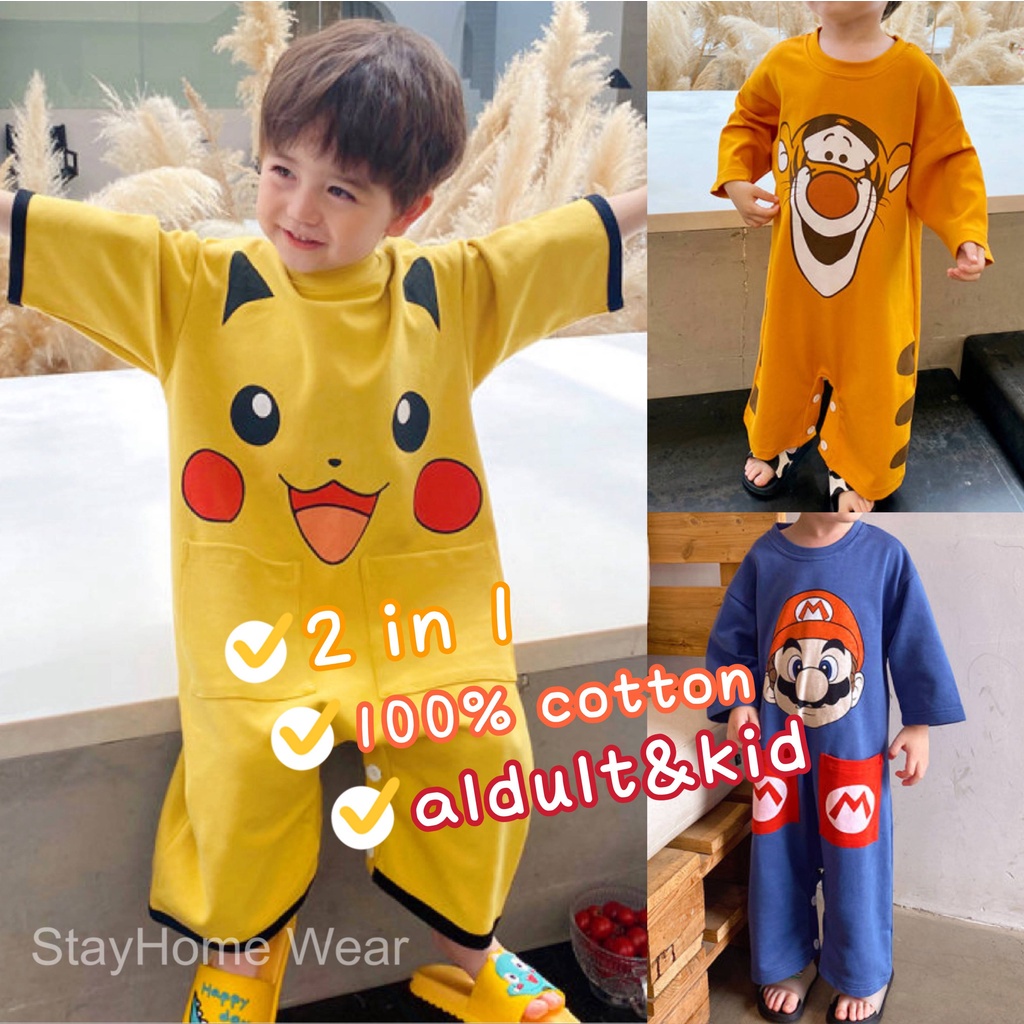 Full Cotton Pikachu Jumpsuit Pyjamas Kids Family Parent Child Pajamas Set Children One Piece Sleepwear Disney Cartoon Long Sleeve Bodysuit Baby Baju Tidur Lelaki Perempuan Sleepsuit Summer Autumn Animal Tiger Snoopy For Boy